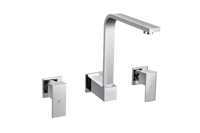 Savanna Square Chrome Wall Sink Set Lever