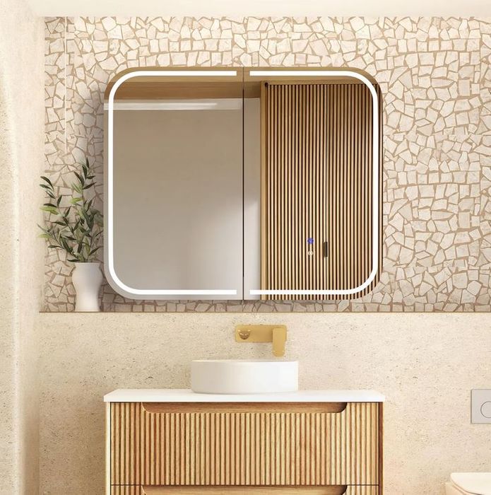 LED Newport 900(W)x750(H) Natural Oak Shaving Cabinet - Premium Edition