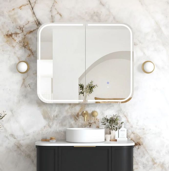 LED Newport 900(W)x750(H) Black Oak Shaving Cabinet - Premium Edition