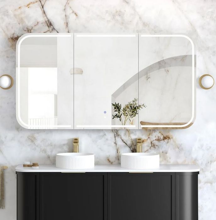 LED Newport 1500(W)x750(H) Black Oak Shaving Cabinet - Premium Edition