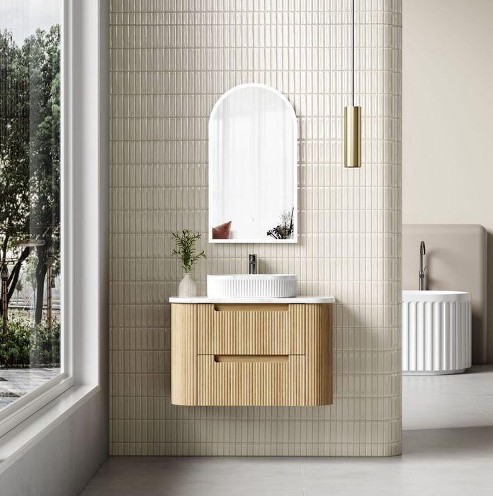 The Varcelli floor-standing vanity brings a perfect balance of warmth and sophistication to your bathroom. Crafted from premium timber plywood, it features beautifully curved edges and a natural wood finish that complements the serene, light-toned space. The vertical groove design adds texture and elegance, while the spacious stacked drawers provide ample storage for all your essentials.