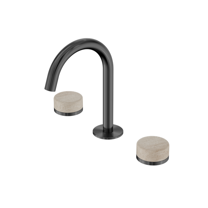 Serenity Basin Set Arc Spout With Rome Travertine Handle Gun Metal