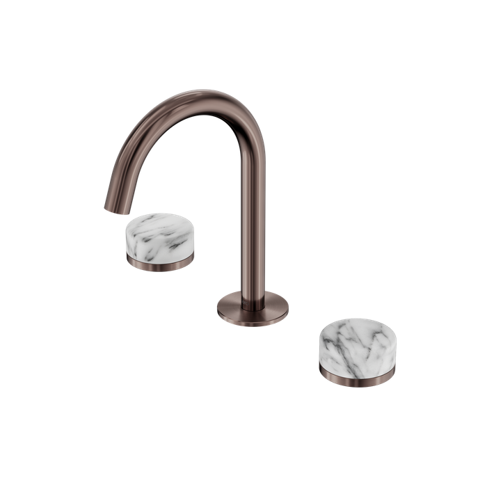 Serenity Basin Set Arc Spout With Arabescato Corchia Handle Brushed Bronze
