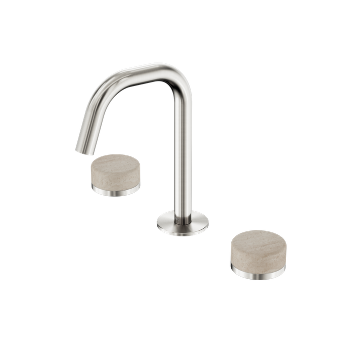 Serenity Basin Set Edge Spout With Rome Travertine Handle Brushed Nickel