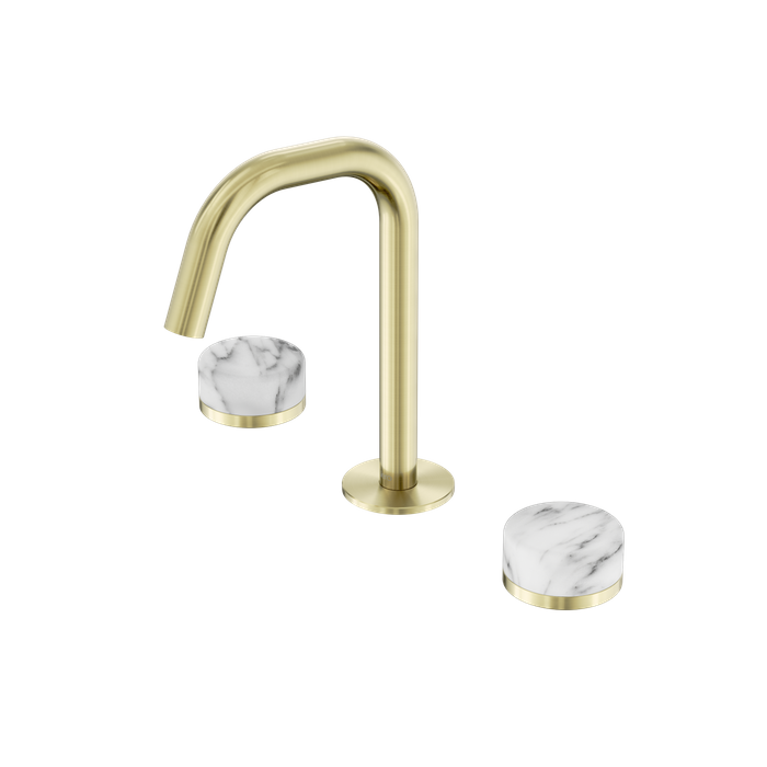 Serenity Basin Set Edge Spout With Arabescato Corchia Handle Brushed Gold