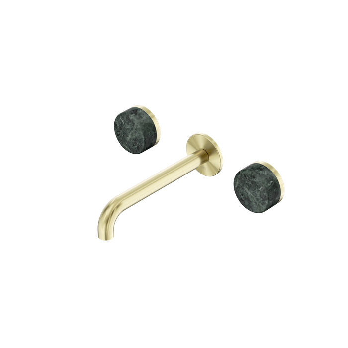 Serenity Wall Basin Set 185mm Spout With Verde Alpi Handle Brushed Gold