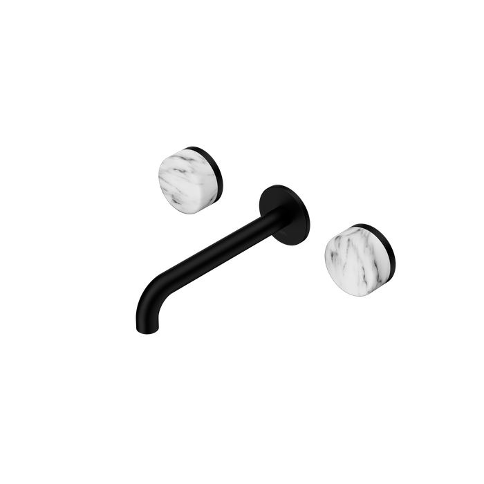 Serenity Wall Basin Set 185mm Spout With Arabescato Corchia Handle Matte Black