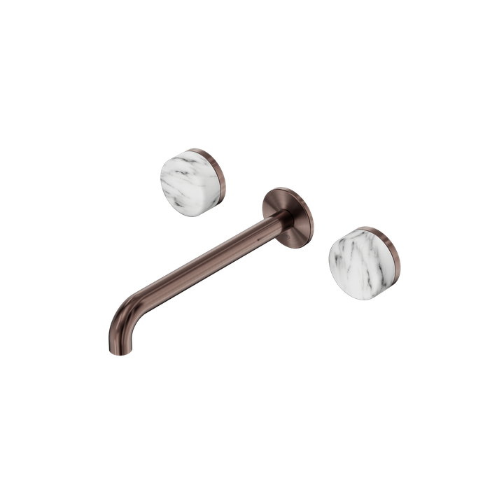 Serenity Wall Basin Set 220mm Spout With Arabescato Corchia Handle Brushed Bronz