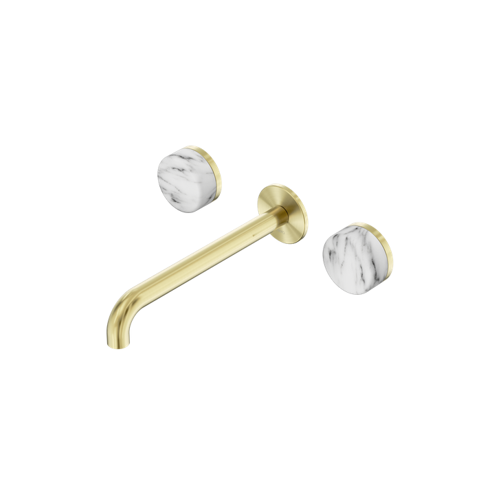 Serenity Wall Basin Set 220mm Spout With Arabescato Corchia Handle Brushed Gold