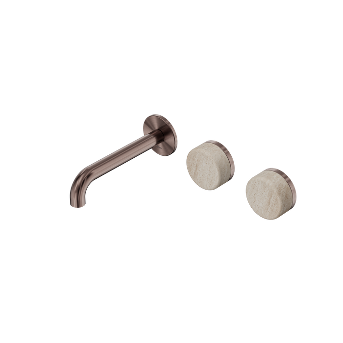 Serenity Wall Basin Set 160mm Offset Spout With Rome Travertine Handle Brushed B