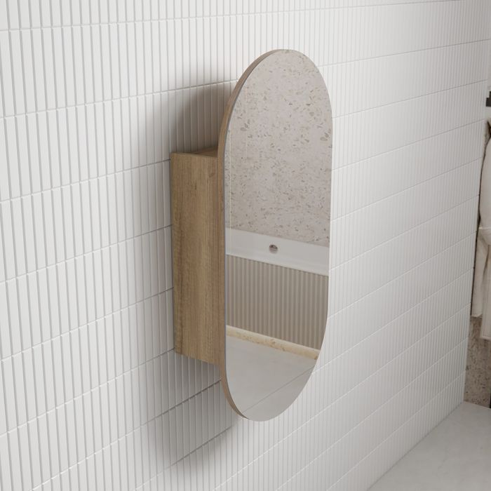 The Beau Monde Shaving Cabinet, with its pill-shaped design and integrated makeup organizer, embodies modern sophistication. Its sleek lines offer a chic grooming and makeup area. This cabinet’s ample storage, along with the specialized organizer, combines contemporary aesthetics with functional elegance, making it an exquisite addition to any bathroom space.