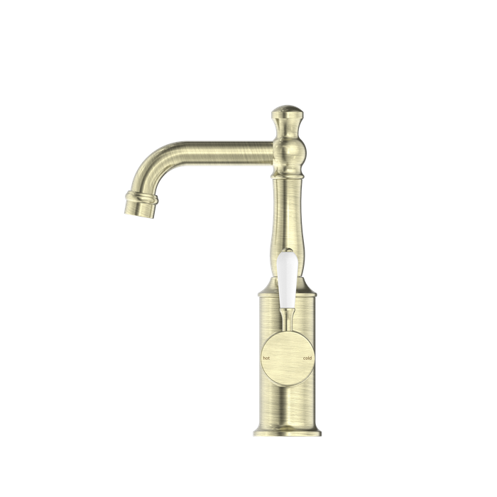 YORK BASIN MIXER WITH WHITE PORCELAIN LEVER AGED BRASS