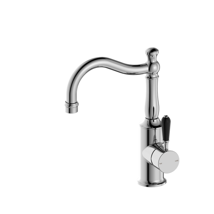 YORK BASIN MIXER HOOK SPOUT WITH BLACK PORCELAIN LEVER CHROME