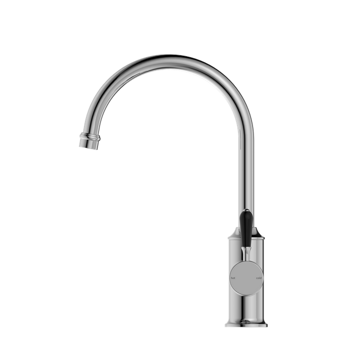 YORK KITCHEN MIXER GOOSENECK SPOUT WITH BLACK PORCELAIN LEVER CHROME