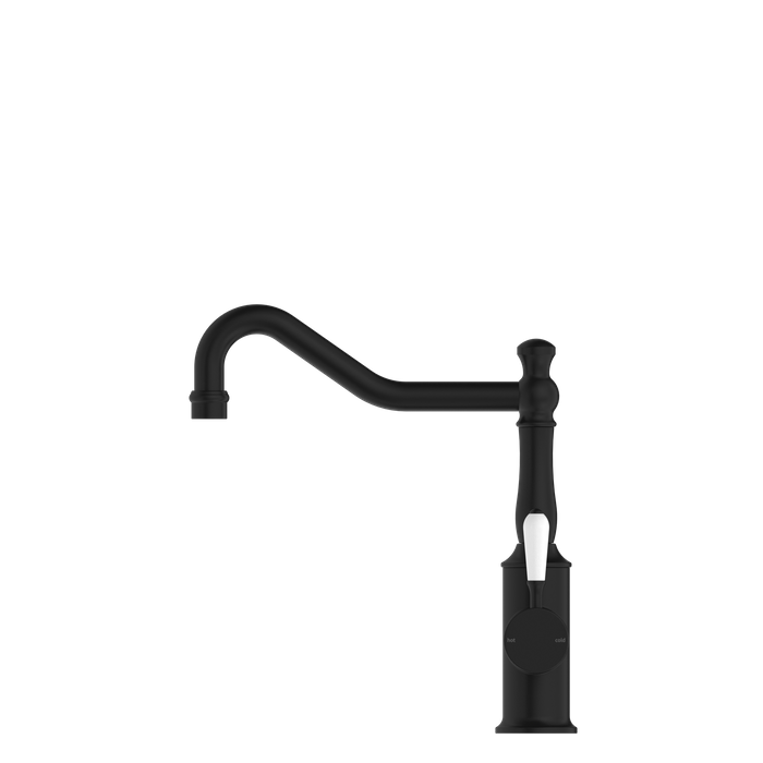 YORK KITCHEN MIXER HOOK SPOUT WITH WHITE PORCELAIN LEVER MATTE BLACK