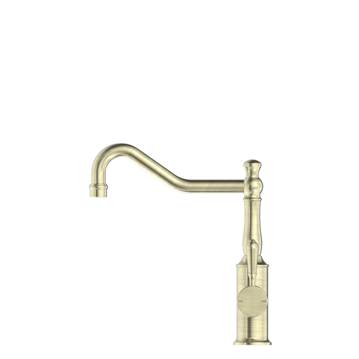 YORK KITCHEN MIXER HOOK SPOUT WITH METAL LEVER AGED BRASS