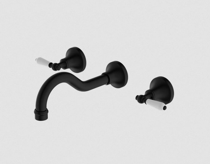 YORK WALL BASIN SET WITH WHITE PORCELAIN LEVER MATTE BLACK
