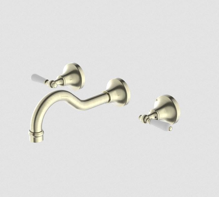 YORK WALL BASIN SET WITH WHITE PORCELAIN LEVER AGED BRASS
