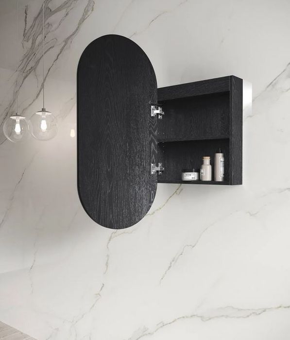 LED Noosa Pill Shape Shaving Cabinet Black Oak