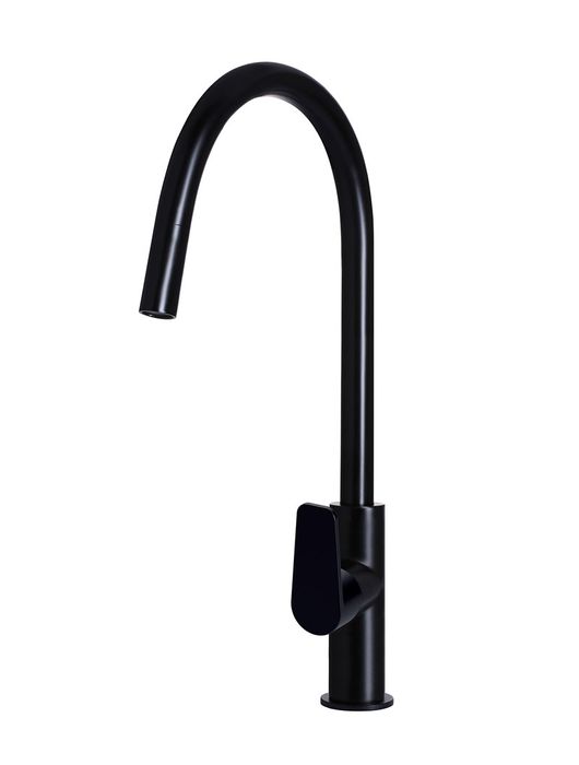 Round Piccola Pull Out Kitchen Mixer Tap - Paddle Handle Matte Black