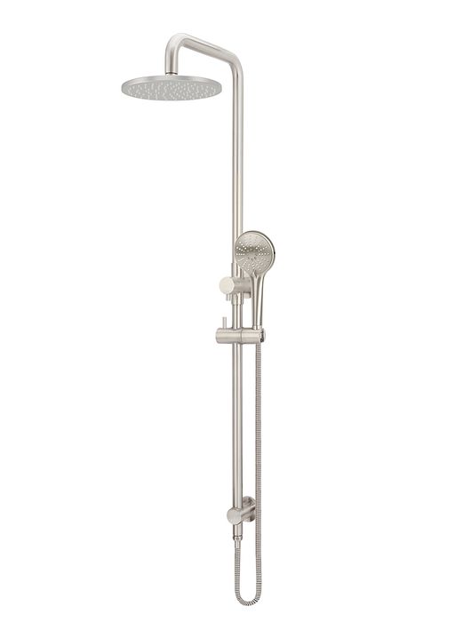 Round Combination Shower Rail 200mm Rose, Three Function Hand Shower Brushed Ni