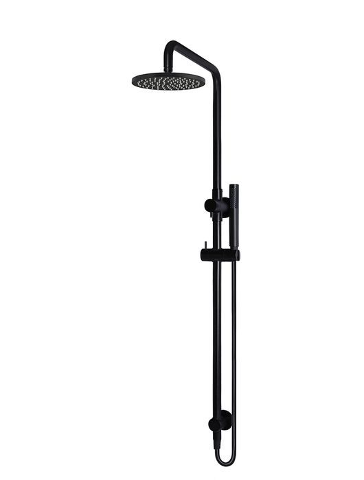 Round Combination Shower Rail 200mm Rose, Single Function Hand Shower Matte Bla