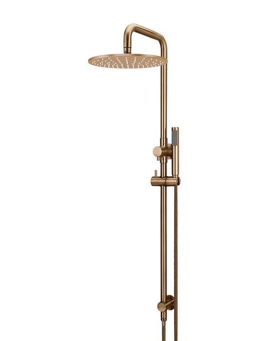 With a simple twist of the in-built diverter, you can switch from the overhead shower to engage the precision shower wand for close-up washing with this stunning PVD Lustre Bronze Round Shower Rail.