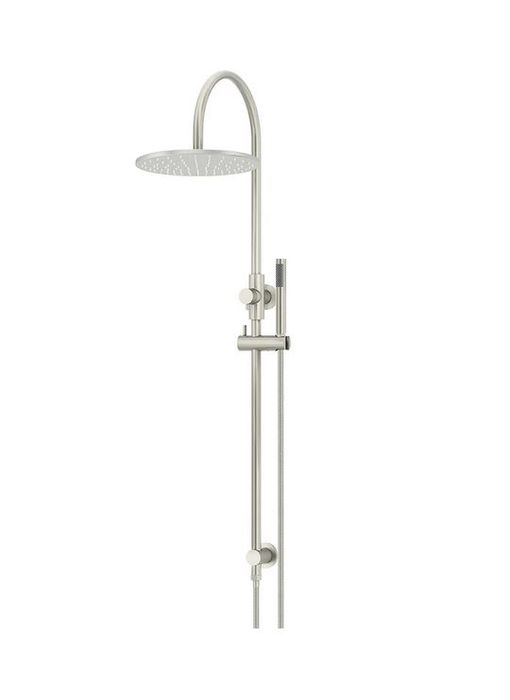 Introducing the latest addition to our shower collection, the Meir Gooseneck Shower Set in Brushed Nickel. With its unique universal water inlet, this shower can be installed with either a top or bottom water connection, making it suitable for both existing and new homes.