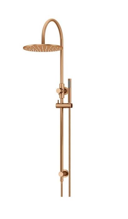 Introducing the latest addition to our shower collection, the Meir Gooseneck Shower Set in Lustre Bronze. With its unique universal water inlet, this shower can be installed with either a top or bottom water connection, making it suitable for both existing and new homes.
