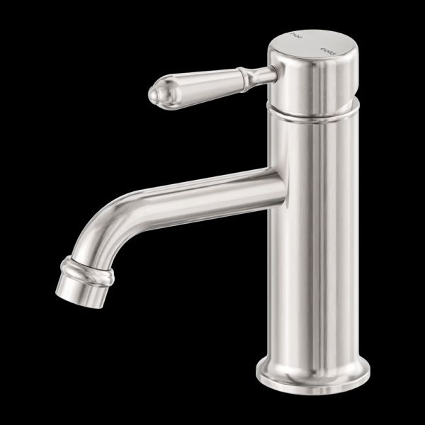 YORK STRAIGHT BASIN MIXER WITH METAL LEVER BRUSHED NICKEL