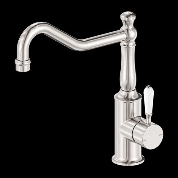 YORK KITCHEN MIXER HOOK SPOUT WITH WHITE PORCELAIN LEVER BRUSHED NICKEL