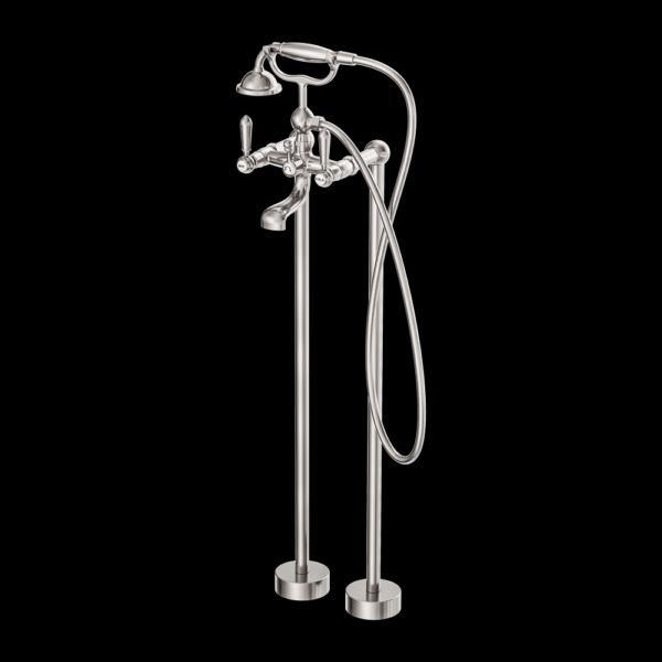 YORK FREESTANDING BATH SET WITH METAL HAND SHOWER BRUSHED NICKEL