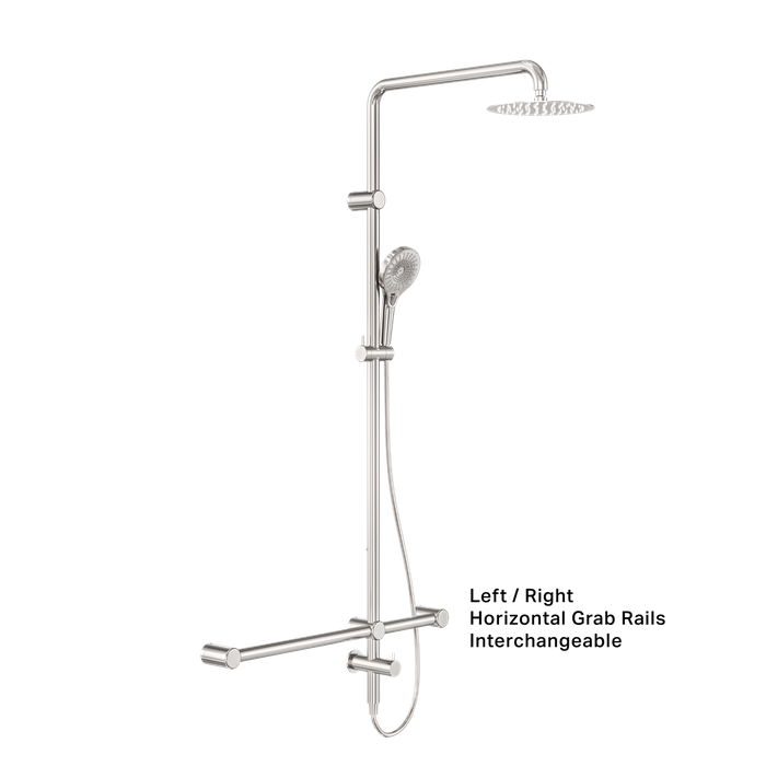 MECCA CARE 32MM T BAR GRAB RAIL 1100X750MM TWIN SHOWER SET BRUSHED NICKEL