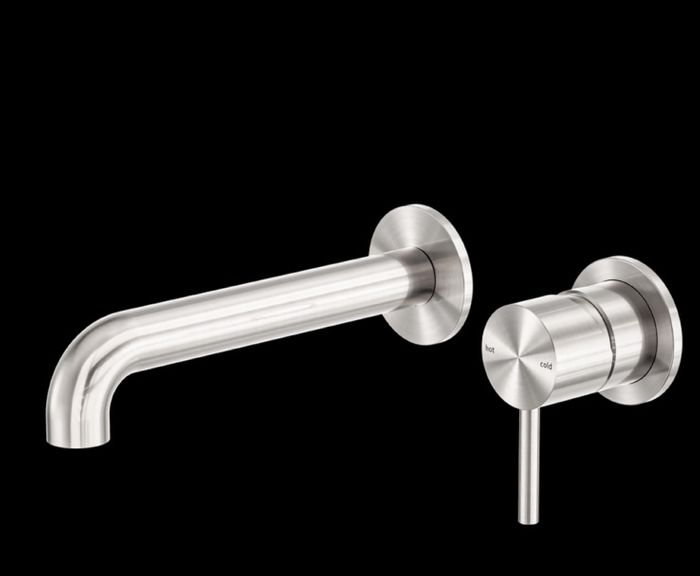 ZEN SS316L WALL BASIN/BATH MIXER SEPARATE BACK PLATE 185MM SPOUT BRUSHED NICKEL