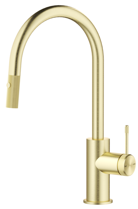 Mica Fluted Pull-Out Gooseneck Sink Mixer - French Gold