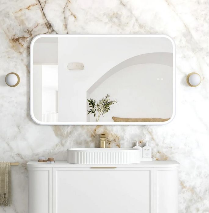 LED Newport 1200(W)x750(H) White Metal Frame Mirror- Install Horizontal or Verti